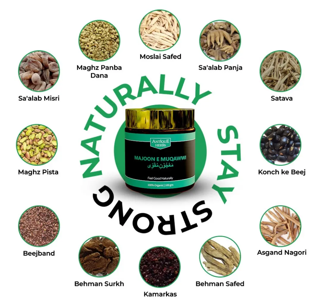 Rediscover vitality, balance, and confidence with Antique Herbs’ Majoon-e-Muqawwi. For over five decades, we’ve blended time tested botanicals with modern standards to create a powerful herbal formulation that supports stamina, focus, and overall well-being.